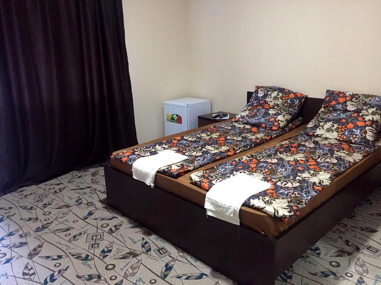 – 2-х – 3-х местный стандартный номер. В номере: одна двуспальная и одна односпальная кровати или три отдельные односпальные кровати, прикроватные тумбочки, шкаф, журнальный столик, телевизор, холодильник, кондиционер, душ, туалет, умывальник, полотенце, туалетная бумага и мыло, электрочайник.