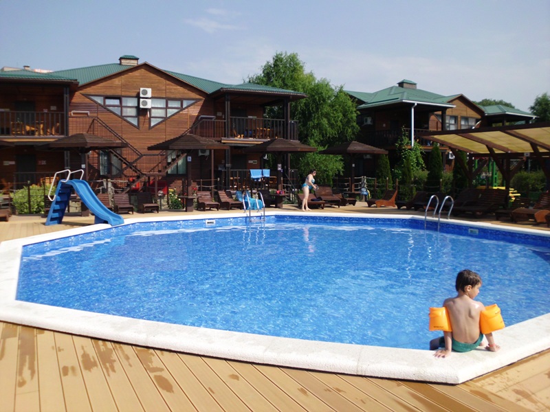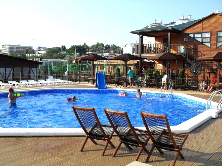 Инфраструктура: кафе, шашлычный дворик с мангалом и зоной отдыха, баня, два открытых бассейна (детский и взрослый),  Wi-Fi (платно).