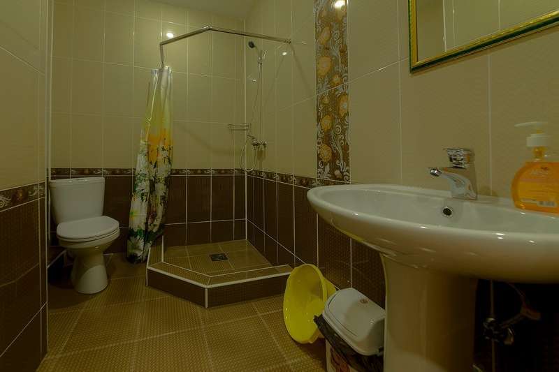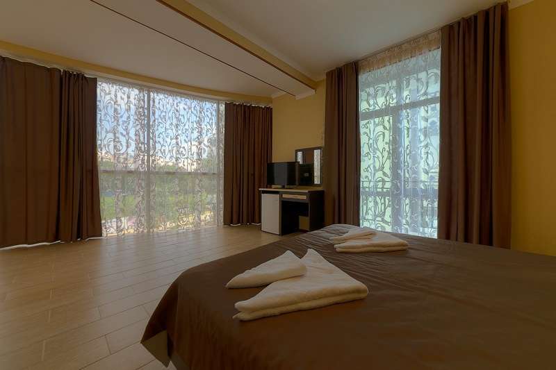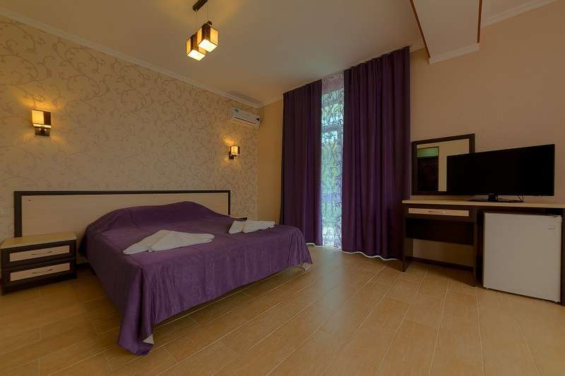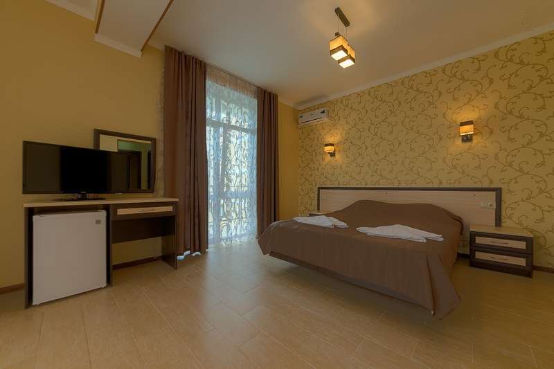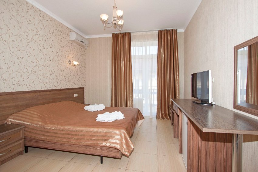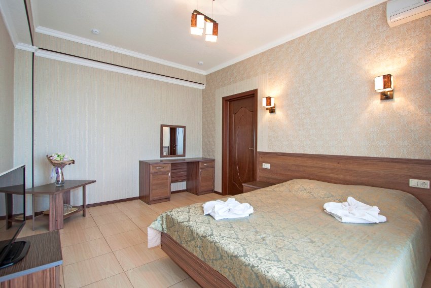 – 2-х стандартный номер с удобствами. В номере: одна двуспальная кровать и односпальная кровать, две – три тумбочки, туалетный столик, журнальный столик, шкаф платяной, вешалка в прихожей, кондиционер, холодильник, телевизор, балкон со столом и стульями, комплект гостевых принадлежностей комплект банных и лицевых полотенец, мыло жидкое, таз, бельевые веревки на балконе. Ваза для фруктов, стаканы, напольное покрытие плитка. Возможно предоставление детской кроватки 300 руб. в сутки по запросу. В двухместных номерах одна двуспальная кровать, раздельные кровати не возможны.