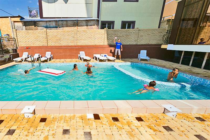 Инфраструктура: бассейн с подогревом с детским отделением, парковка перед гостевым домом, утюг и гладильная доска на каждом этаже, смена белья раз в 5 дней, уборка номера ежедневно, детская площадка. Предоставляется бесплатный wi-fi.