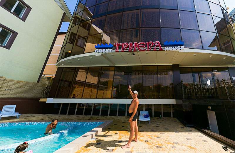 Расположение: Отель «Триера» расположен на первой береговой линии, в 7 минутах ходьбы от песчаного пляжа, парка, аквапарка. Рядом расположен овощной рынок, аттракционы. По дороге к морю расположен питьевой бювет с лечебной минеральной водой, различные магазины и сувенирные лавки, парк аттракционов и развлечений.На территории отеля имеется бассейн с подогревом с детским отделением, столовая, где вы можете заказывать питание, детская площадка, парковка. Для удобства гостей работает лифт. В отеле облагороженная территория, виноград, просторный двор, места для отдыха.