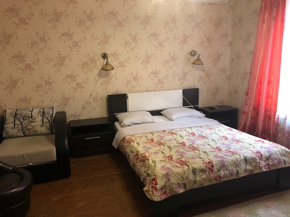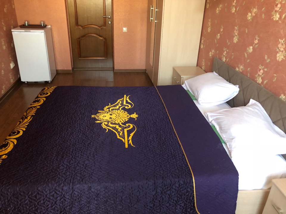 – 2-х местный номер с удобствами. В номере: двуспальная или две односпальные кровати, тумбочка, шкаф, зеркало, кондиционер, телевизор, холодильник, душ, туалет, умывальник. Дополнительное место - кресло-кровать. Уборка номеров - раз в 5 дней. Wi-Fi – бесплатно.(Дети до 4-х лет - не принимаются)