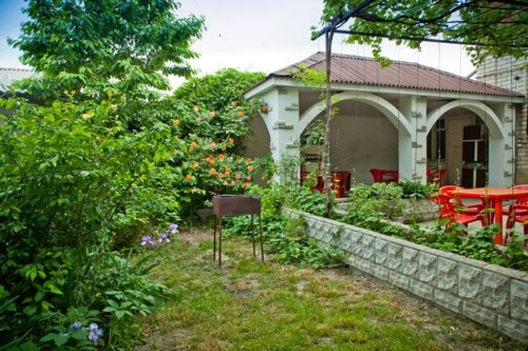 Инфраструктура:  Благоустроенный зеленый дворик, с множеством зелени и цветов, есть места для отдыха.