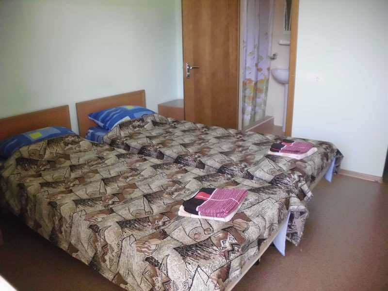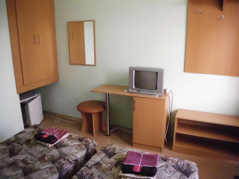 - 1-о - 2-х местный комфортабельный номер с удобствами. В номере: одна (ширина 140 см.) или  две односпальные кровати (ширина 90 см.), прикроватные тумбочки, шкаф, столик, кондиционер,  телевизор,  холодильник,  душ,  туалет, умывальник. Дополнительное место – евро раскладушка.