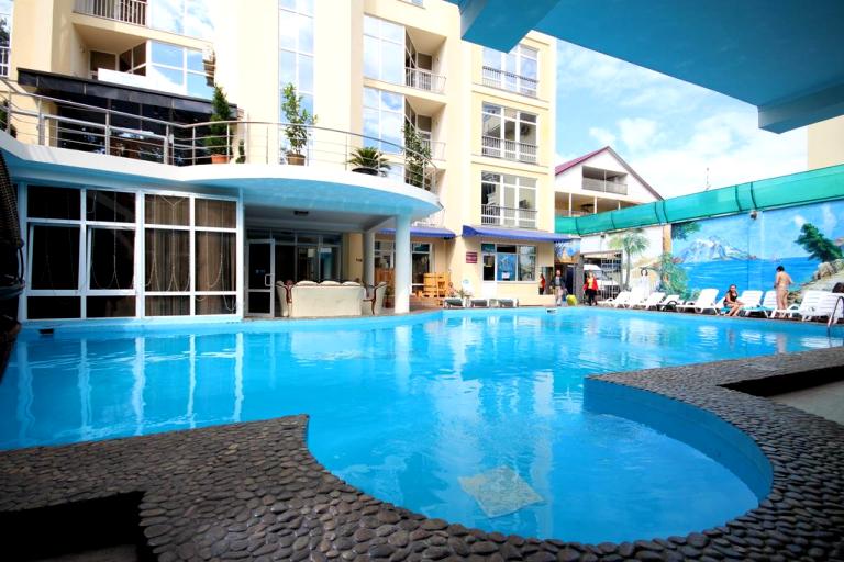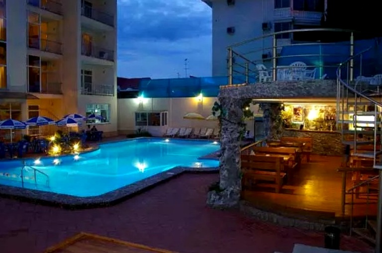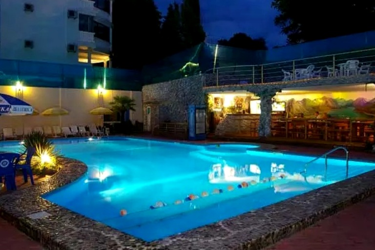 Инфраструктура: к услугам отдыхающих: вместительный бассейн с подогревом, где заботливо предусмотрена специальная зона для маленьких гостей, сад и терраса, детская игровая площадка, детский клуб, салон красоты, сауна, бильярд, теннис, караоке, площадка для барбекю и пикника, ресторан, кафе-бар, организация экскурсионных мероприятий. Гейзер и подсветка придадут купанию особые впечатления. Кафе-Бар у бассейна украсит Ваш активный отдых разнообразием коктейлей и прохладительных напитков. В выходные и праздничные выступают различные танцевальные коллективы, играют лучшие ди-джеи.