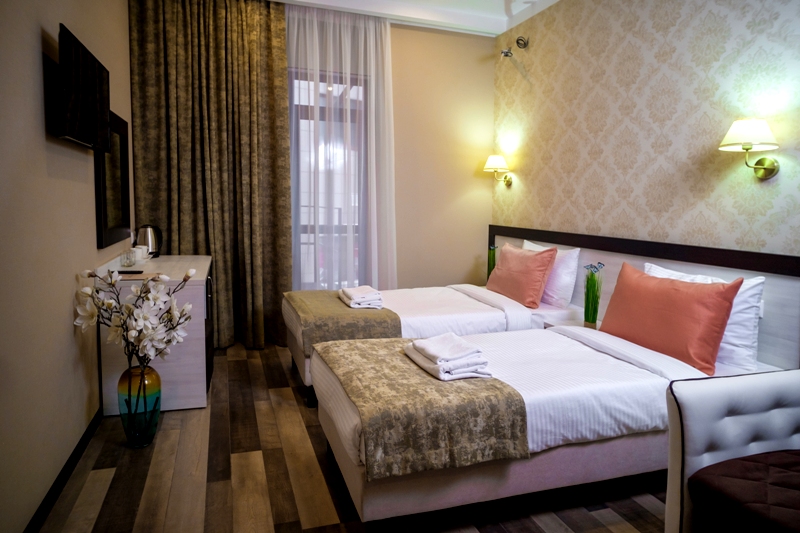 –  2-х  местный  стандартный номер. В номере: две односпальные кровати или кровать King-size, письменный стол, гардероб, кондиционер, центральное отопление, телевизор, спутниковое телевидение, чайник, холодильник. В ванной: ванна, душ, средства личной гигиены, халат, тапочки, фен, набор полотенец. Дополнительное место - кресло-кровать.