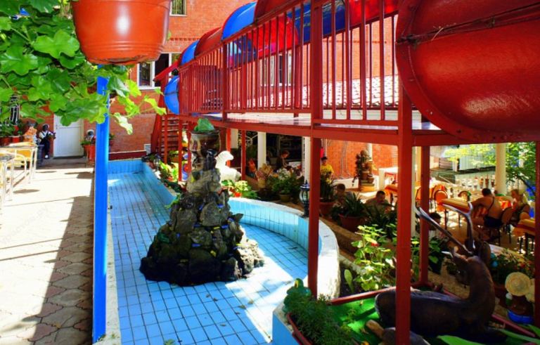 Инфраструктура: бильярдная, бассейн с детским отделением,  детская площадка, мини зоопарк, парк отдыха, многоярусное кафе с танцплощадкой, разноцветные декоративные фонтаны с подсветкой, прогулочные дорожки с местами для отдыха. Раз в неделю проводятся различные шоу-программы. Фонтаны с подсветкой, разнообразные статуэтки, прогулочные дорожки с местами для отдыха. Есть детская площадка и детский бассейн, живой уголок с птицами  и хорьками. Интернет: Wi-Fi. Привозить животных запрещено!!!