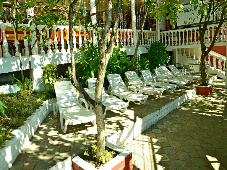 Пляж: галечный в 250 метрах от гостиницы. Спуск к морю по ступенькам. К услугам отдыхающих: катание на "банане", скутере, катере, парашюте, морские прогулки на теплоходе. На пляже работает кафе с легкими закусками и широким ассортиментом напитков.