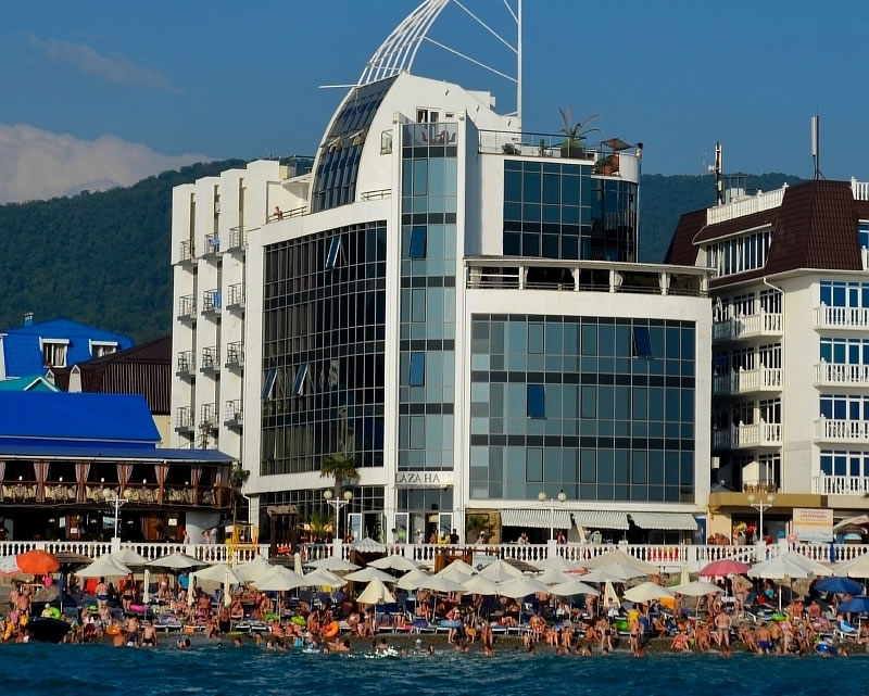 Расположение Отель «Laza Hall» - небольшая уютная гостиница близ Сочи, ориентированная на международный класс и отражающее южное очарование побережья Черного моря, расположена на городской набережной в центральной части поселка Лазаревское на берегу моря. Уникальный дизайн фасадного остекления придает гостинице современный, буквально пронизанный насквозь солнцем, воздухом, непревзойденный внешний вид. В нескольких минутах ходьбы от «Лаза Холл» расположены аттракционы, аквапарк, развлекательные центры, продуктовые магазины, столовые, аптеки, банкоматы, парикмахерские, салоны красоты. Удобное расположение отеля помогает соединить природный шарм морского побережья со всеми необходимыми благами цивилизации и культурного отдыха, подойдет как для активного отдыха веселой компанией, так и для спокойного отдыха с детьми!!!