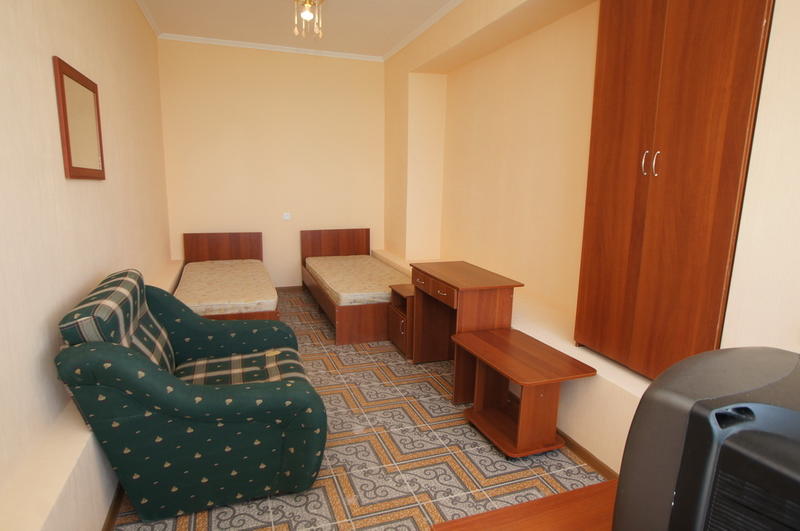 – 2-х – 3-х местный номер с удобствами на этаже. В номере: одна двуспальная или две раздельные кровати, шкаф, тумбочки, телевизор, вентилятор. Душ, туалет, умывальник, холодильник – на этаже. В 3-х местном номере третье место – кресло-кровать.
