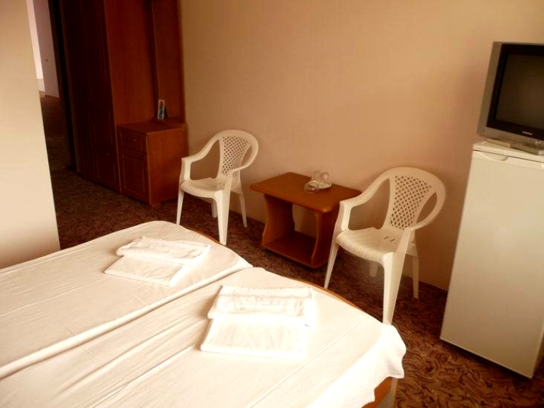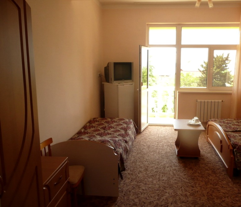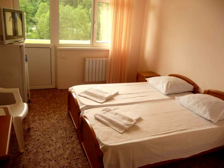 – 2-х местный стандартный номер. В номере: одна двуспальная или две раздельные кровати, прикроватные тумбочки, журнальный столик, телевизор, кондиционер, душ, туалет, умывальник, набор полотенец. В каждом номере есть балкон с прекрасным видом на черноморские пейзажи. Балкон оборудован мебелью и сушилкой. Дополнительное место – евро раскрадушка.