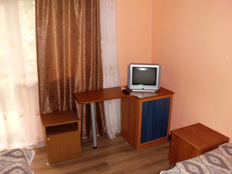 – 2-х местный стандартный номер с удобствами. В номере: две раздельные кровати, прикроватные тумбочки, журнальный столик, шкаф, зеркало, телевизор, кондиционер, душ, туалет, умывальник. Холодильники – на этаже. Номера без балконов. Дополнительное место – кровать (по запросу). Гладильная доска на каждом этаже.