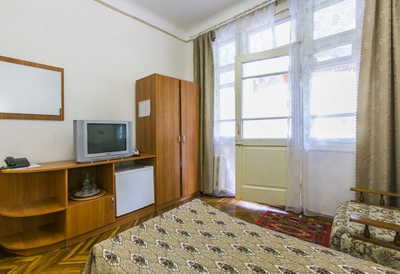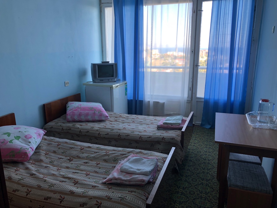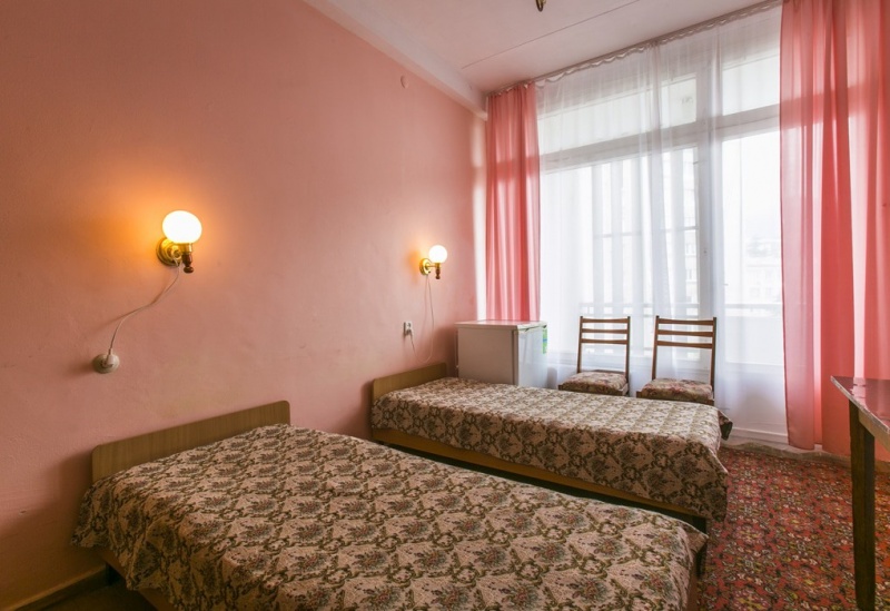 - 2-х местные номера первой категории с удобствами (туалет, умывальник, душ), телевизором, холодильником, балконом.