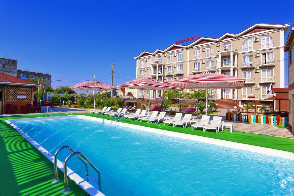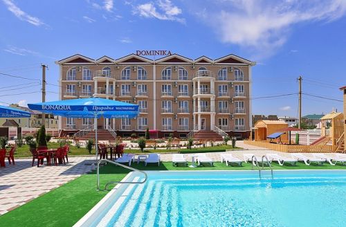 Расположение: Гостевой дом «Доминика» находится в курортном поселке Береговое, в городском округе Феодосии, в 300 метрах от моря. Поселок Береговое знаменит своим Золотым пляжем - самым большим по своей протяженности и площади песчаным пляжем Крыма. Он идеально подходит для семейного отдыха с детьми - широкая пляжная полоса, пологий берег, ярко жёлтый мелкий песок, мелкое ровное дно и вода, которая очень хорошо прогревается у берега. Гостевой дом «Доминика» это небольшой комплекс из современного четырёхэтажного здания с открытыми легкими балконами, открытого бассейна с морской водой и подогревом, кафе, парковки и площадки для анимации. Детская анимация три раза в неделю, детский батут бесплатно. Территория озеленена, закрыта для посторонних, охраняется круглосуточно, бесплатный Wi-Fi. "Доминика" - это не просто отель, это место, которое займет маленький островок в Вашем сердце и всегда будет его теплыми воспоминаниями.