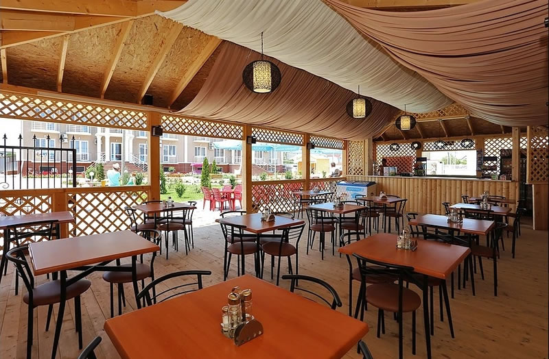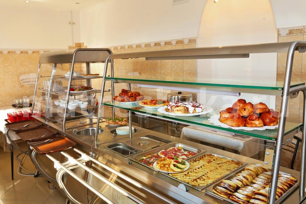 Питание: за дополнительную плату предлагается питание "полный пансион" (3-х разовое) или "полупансион" (завтрак, обед или ужин отдельно) в формате "шведский стол". Столовая обрадована линией раздачи, заказ на линии из предложенных блюд формируется поваром индивидуально для каждого гостя.