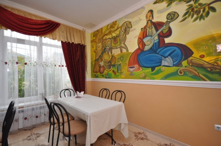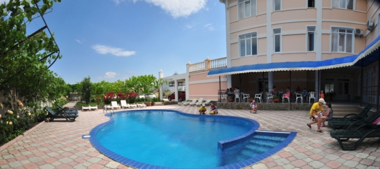 Расположение: Гостевой дом “В гостях у Есаула” расположен в районе аквапарка, в 15 минутах пешим шагом от пляжей Судака. Прежде всего дорога к морю проходит по ровной, освещенной в ночное время дороге. Казацкий дом В гостях у Есаула в Судаке предлагает своим постояльцам широкий спектр услуг для полноценного отдыха. Прежде всего отдыхающим предоставляется проживание в комфортабельных номерах. Безусловно оборудованных всем необходимым для полноценного отдыха. А также есть летняя площадка и собственное кафе. Прежде всего вам предложат широкий выбор блюд по меню. На территории казацкого дома расположен бассейн. А также гостям предоставляются шезлонги для отдыха. Отличительной особенностью казацкого дома» В гостях у Есаула» в Судаке является предоставление национальных казацких костюмов. Потому что в них можно сделать фото на память. Привозить животных запрещено. Охраняемая стоянка для автомобилей. Есть площадка для приготовления шашлыка и барбекю. На территории гостевого дома есть Wi-Fi (платно).