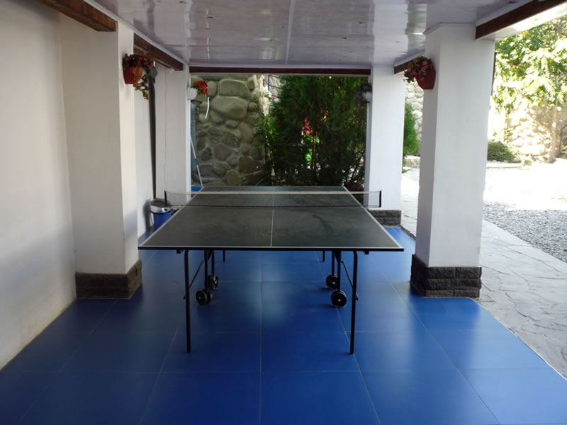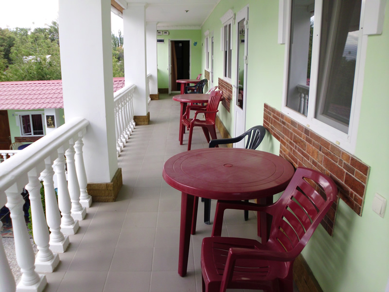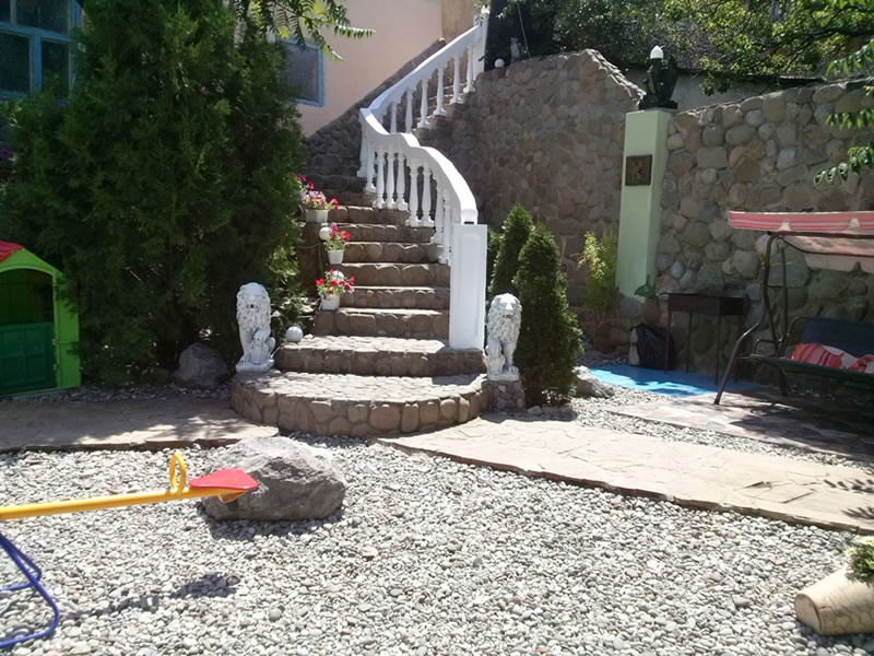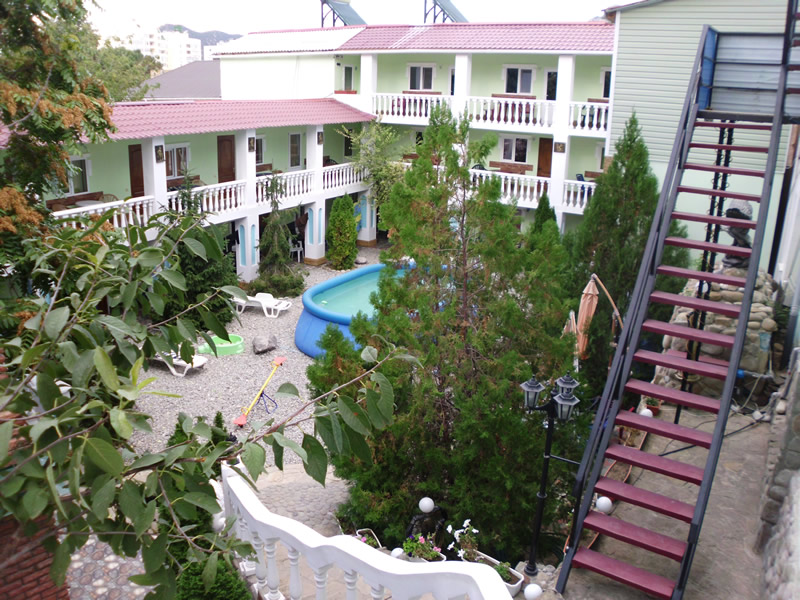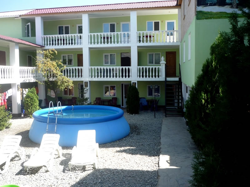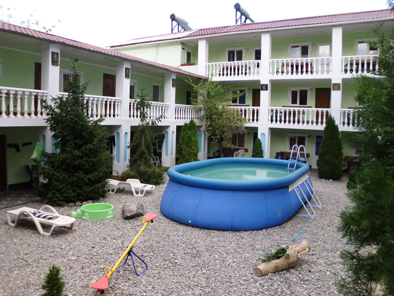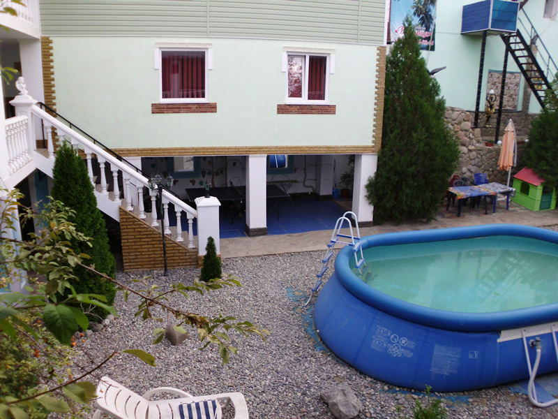 Инфраструктура: собственная, охраняемая, огороженная, благоустроенная территория: Wi-fi, небольшой каркасный бассейн, лежаки, качели, мангал, искусственный водопад, автостоянка, компьютерная комната (бесплатно), настольный теннис, кальян, гладильная доска + утюг. Уборка номеров – по требованию.